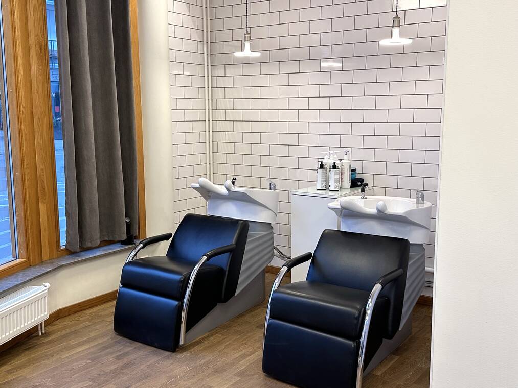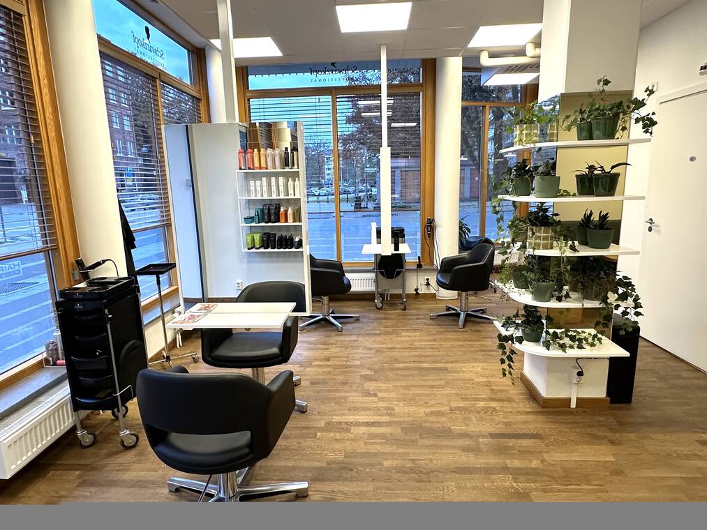 Salongen har en modern planlösning med fyra arbetsplatser, två schamponeringar, ett praktiskt pentry och ett rymligt WC. Planlösningen ger en luftig och trivsam miljö för både kunder och personal.